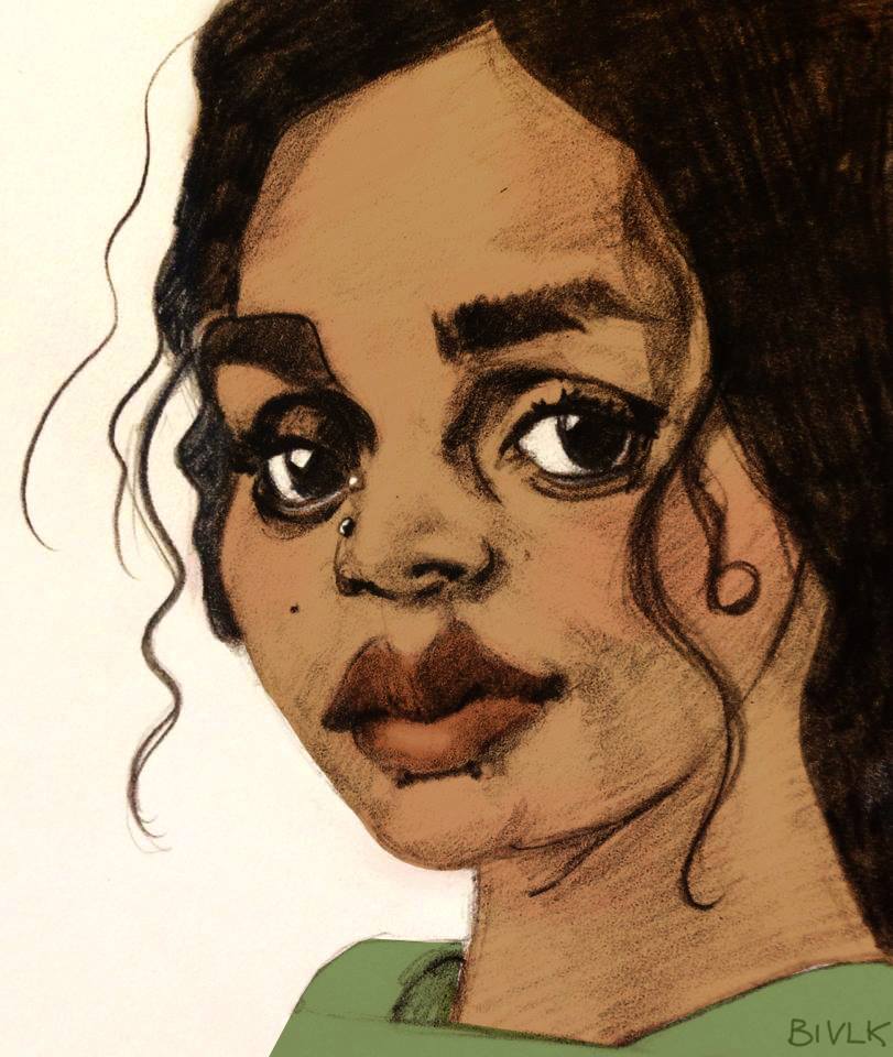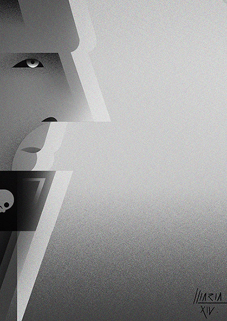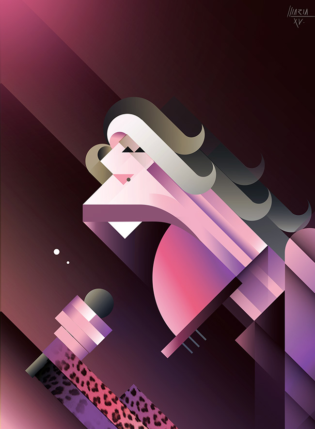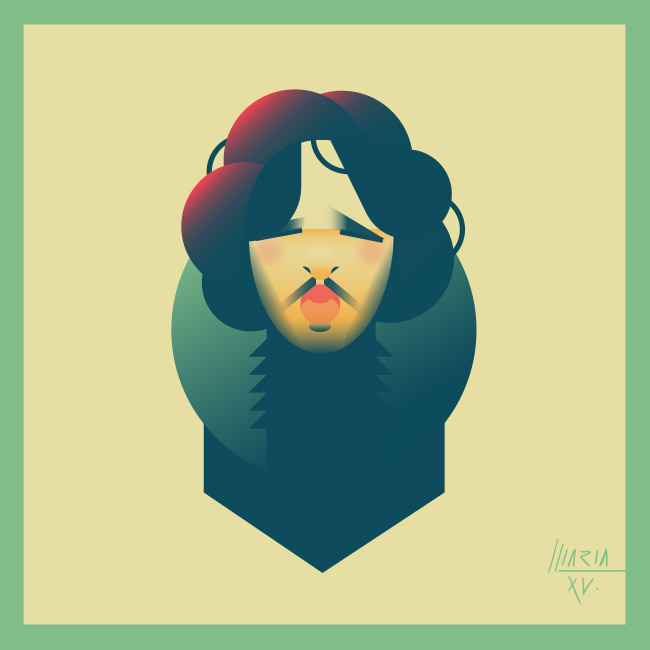 As far as caricature is concerned, Maria has always been fascinated by human faces and what makes unique each one of us. She debuted in the 00s on the website rocktoons.com and since then she crafts private and live commissions in many different styles. In the latest years, she developed a recognizable vector geometric style that combines her passion about faces, illustration and design.
