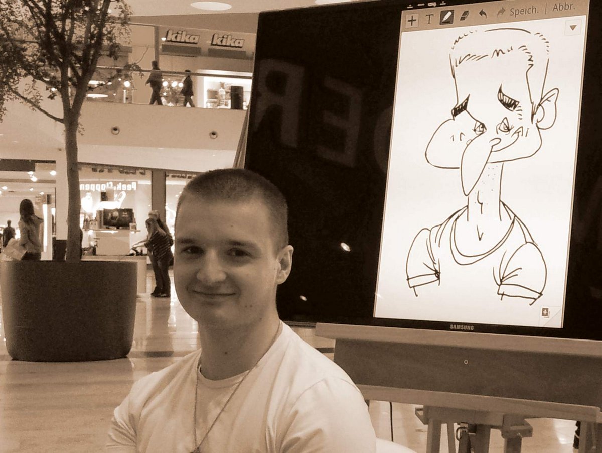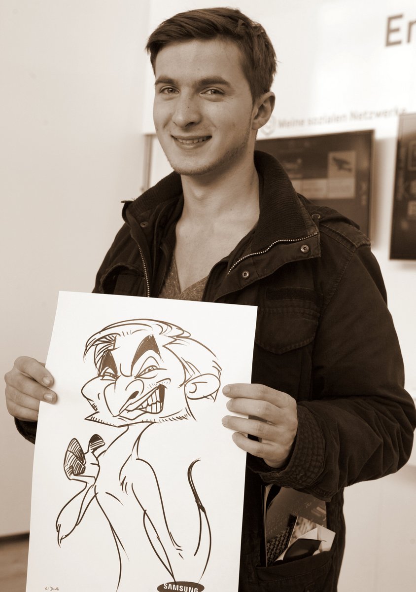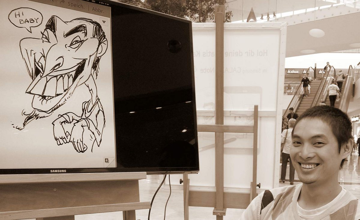 X i Ding is a caricature artist living in Vienna, specialized in professional live caricature drawing.